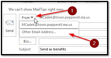 - Next time you wish to send as benefits@, just click the FROM dropdown in a new email and the benefits option will be there already.