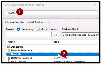 - Confirm that you see the benefits group in your address book , open new email -> click the TO button and see if “benefits” is in the list.
